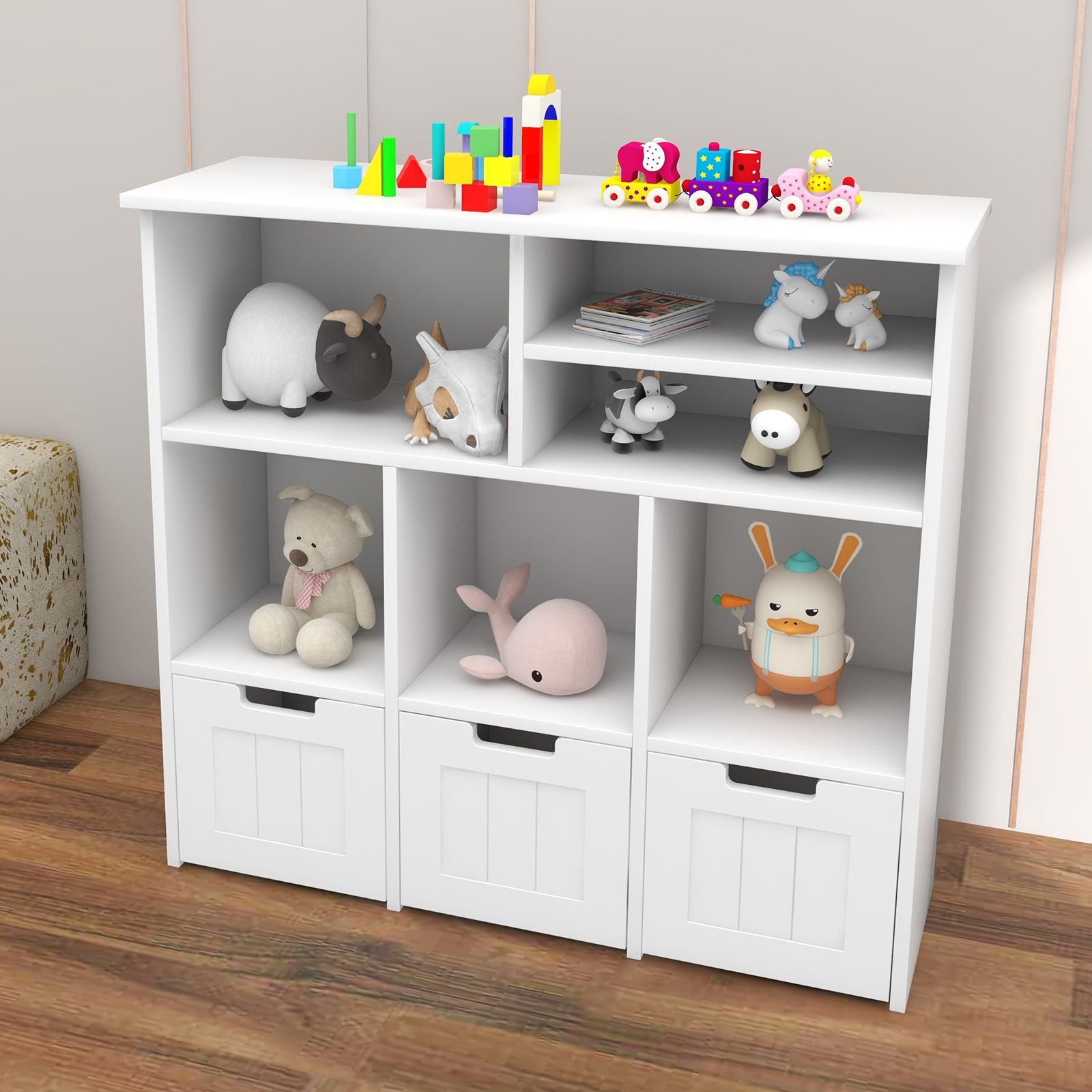 Upgraded 35-Inch Toy Organizer with 3 Levels, 6 Storage Compartments, And 3 Removable Drawers - Perfect for Playrooms, Bedrooms, And Living Areas
